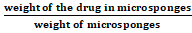 Drug content = weight of the drug in microspongesweight of microsponges