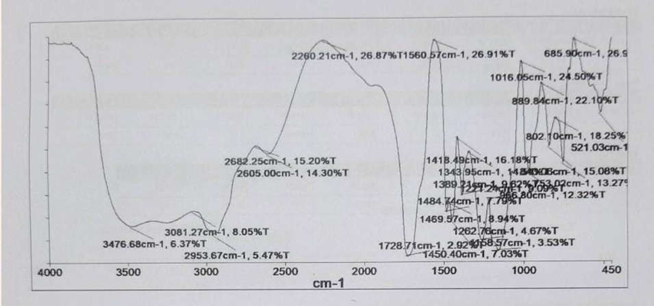 FTIR study is another identification test for drug. The FTIR spectra of pure Moxifloxacin hydrochloride and its mixture with polymer were determined.