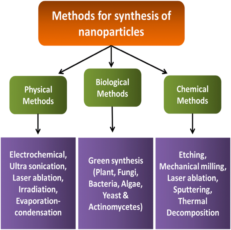 NPs can be synthesized using a variety of techniques; however, they can be broadly categorized into two classes: (1) bottom-up approaches and (2) top-down approaches. Depending on the operation, reaction state, and accepted protocols, these techniques are further subdivided into several subclasses (Rao et al., 2004; Li et al., 2008; Kharissova et al., 2013; Bakhshi et al., 2020).