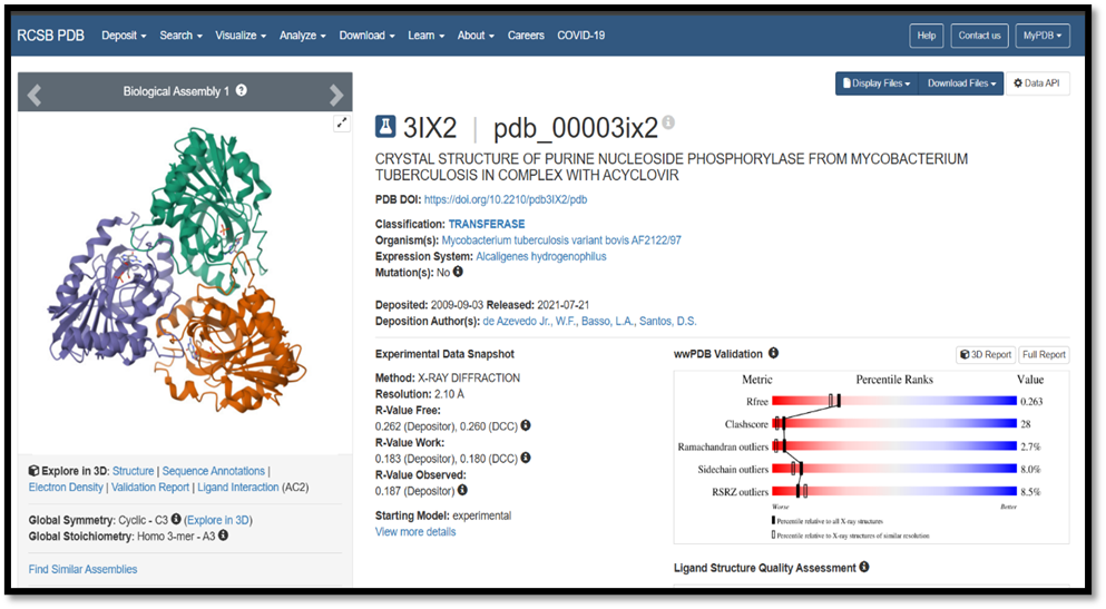 The protein data bank (PDB) is a database for the three-dimensional structural data of large biological molecules, such as protein and nucleic acid. The software used for chemical database search is Swiss Target Prediction