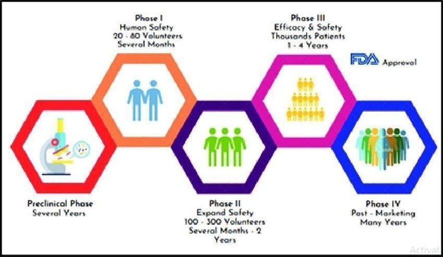 Medical studies were carried out into stages, which is intended address a distinct research subject. Every clinical trial of a new medication or treatment goes through a number of stages to determine its efficacy and safety. The first step in a pharmacological investigation is the medication. design and the search for drugs test it on a small number of human volunteers before moving on to animal testing. If the trial is safe and beneficial, it can then be tested on a larger number of study participants. Cost and Time: The complete drug development process, from preclinical to phase IV, can take 12 to 18 years and frequently cost more than $1 billion[10].