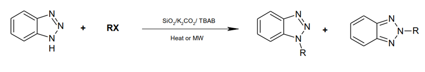 N-substituted derivatives of benzotriazole have been prepared by N-Alkylation of Benzotriazole under Solvent-Free Conditions: An efficient, simple and solvent-free method for highly regioselective N-alkylation of benzotriazole in the presence of SiO2, K2CO3 and tetrabutylammonium bromide (TBAB) under thermal and microwave conditions has been described.