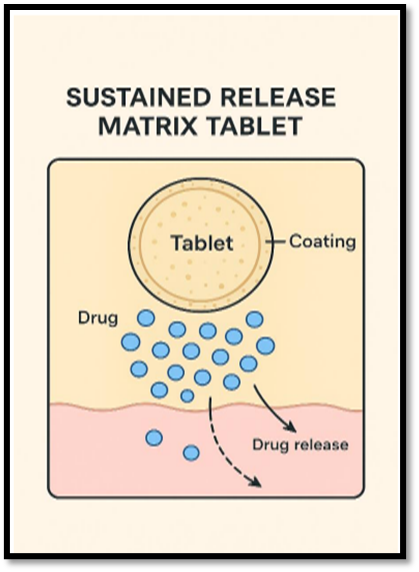 In sustained-release systems, the rate and extent of drug release are governed by the nature and concentration of polymers used in the matrix. The fundamental objective of such formulations is to achieve a steady-state concentration that ensures optimal therapeutic response and reduces dosing frequency (Mandal et al., 2007). Matrix tablets, among SR systems, are particularly popular due to their simplicity, stability, and cost-effectiveness.