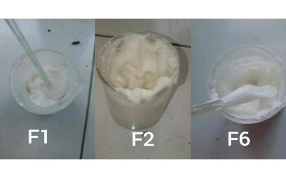 Fig No. 8.Formulations F2, F4, and F6 contain acetone extract of okra mucilage and rice extract