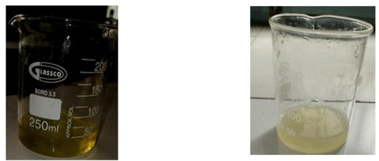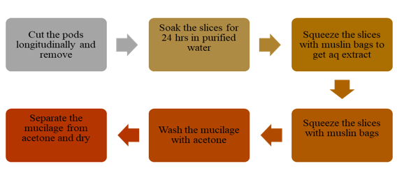 Okra pods can be found at nearby markets. Slice the pods thinly along their length, remove the seeds, and soak the slices in filtered water for 24 hours. To create an aqueous extract, press the soaked slices through muslin bags to extract the liquid. To isolate the mucilage, dilute the aqueous extract with an equal amount of alcohol. Rinse the mucilage with three times its volume of acetone. Filter out the acetone and separate the mucilage. Reserve a portion of the mucilage for sun drying as shown in Fig No. 3 [9] and Fig No. 4 and 5 shows the acetone etract of okra and okra mucilage.