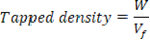 Carr’s index: To analyze the flow ability, the Carr’s index is calculated on the basis of the bulk density and tapped density. It can be calculated by using Eq. 5.