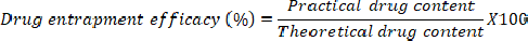 Drug entrapment or encapsulation efficiency: The drug entrapment efficiency was calculated by Eq. 7.