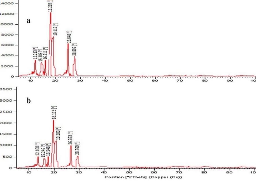 Figure 3: XRD of a) Amoxicillin and b) Optimized formulation F13.