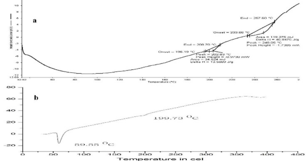 Figure 2: DSC thermogram of a) Amoxicillin and b) Fomualtion F13.