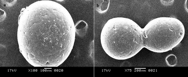 Particle size analysis: The particle size can be identified with the help of optical microscope in the range of 0.2 to 500 µm. The particle size was measured using an optical microscope and the mean microsphere diameter was calculated by measuring 50 particles with the help of a calibrated ocular micrometer.