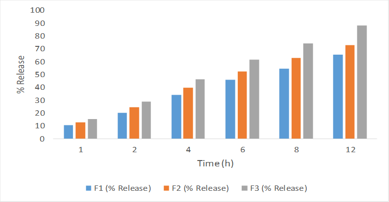 All experiments were carried out in triplicate, and data were expressed as mean ± standard deviation (SD). Statistical analysis was performed using one-way ANOVA followed by Tukey’s post-hoc test to compare different formulations. A p-value less than 0.05 was considered statistically significant.