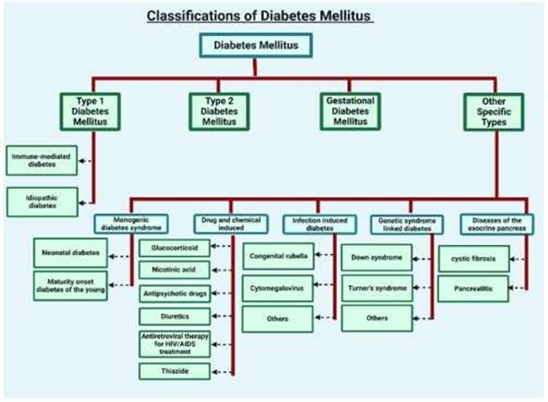 The peculiarities of the diabetes mellitus epidemic in various geographic locations are the main subject of this review. While the Western Pacific region has the biggest number of adults with a diagnosis and includes nations with a prevalence rate of 37.5%, the Middle East and North Africa region has the highest prevalence of adult diabetes (10.9%). The many types of diabetes mellitus, including type 1, type 2, gestational diabetes, and others, are compared in terms of their genetic components, etiology, and diagnostic standards.