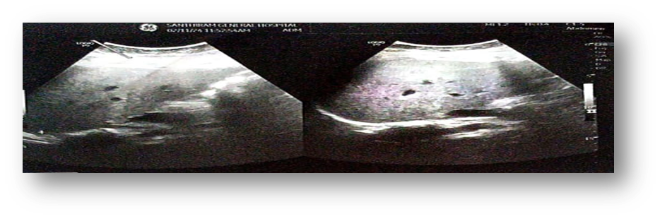 Figure2. USG scan of abdomen showing Grade-II fatty liver