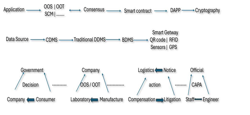 2. Quality issues detection: In order to determine the deviation, the complaint rate, and the adverse events, we have developed an analytical model. The smart contract will then decide what happens. The smart contract will direct the government or a related commercial laboratory to finish the OOS/OOT investigation once the results satisfy the recall requirements. Each record that is produced in this manner needs to be added to the blockchain network.