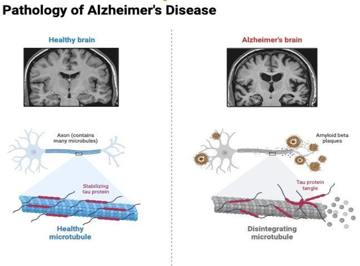 From a pathophysiological perspective, EOAD differs from LOAD in its stronger genetic contribution. Mutations in the amyloid precursor protein (APP) and the presenilin genes (PSEN1 and PSEN2) account for a substantial proportion of familial EOAD cases, leading to abnormal amyloid processing and early, aggressive disease onset.[6]Beyond genetics, EOAD involves mitochondrial dysfunction, oxidative stress, neuroinflammation, synaptic failure, and cholinergic deficits, making it a complex, multi-factorial disorder. Advances in biomarkers— including cerebrospinal fluid (CSF) assays of amyloid and tau, plasma phosphorylated tau, and neurofilament light chain, as well as neuroimaging modalities (FDG-PET, amyloid PET, tau PET)—have improved diagnostic precision and facilitated earlier detection.Despite progress, treatment options remain limited. [13] Current pharmacological therapies such as cholinesterase inhibitors (donepezil, rivastigmine, galantamine) and NMDA receptor antagonist (memantine) provide symptomatic relief but do not halt disease progression.