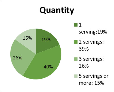 Analyzing the quantity as given 250ml per serving, 39% have 2 servings, 26% of the participants have 3 servings and 15% have 5 servings (Fig.No4), at the morning interval of 37.4% and at evenings with a 42%, being the most preferred time. (Fig.No5)