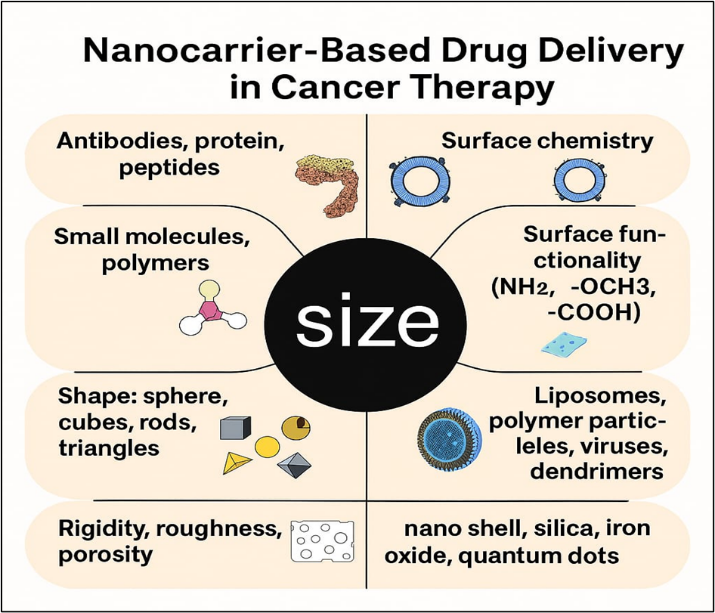 Nanocarriers have shown great potential in improving cancer therapy by enabling precise drug delivery, reducing side effects, and enhancing treatment efficacy. Different types of nanocarrier systems—such as liposomes, polymeric nanoparticles, dendrimers, carbon nanotubes, magnetic nanoparticles, and gold nanoparticles—are being explored for their role in treating various cancers.