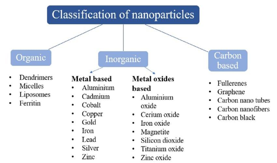 Nanoparticles are usually divided into two main categories, organic and inorganic, based on their chemical makeup. Lipid nanoparticles, liposomes, nanohydrogels, nanospheres, polymeric micelles, dendrimers, and polymeric vesicles are examples of organic nanoparticles. These organic nanoparticles are frequently employed in vaccine development, gene therapy, and medication delivery due to their great biocompatibility and adjustable physicochemical characteristics. Non-metallic and metallic nanomaterials make up inorganic nanoparticles. Due to their special electrical and optical characteristics, metallic nanoparticles like gold, silver, and iron oxides are widely employed in biological imaging, targeted medication delivery, and cancer therapy. Superb mechanical qualities of non-metallic nanomaterials, such as graphene and carbon nanotubes, can promote cell growth and tissue regeneration.