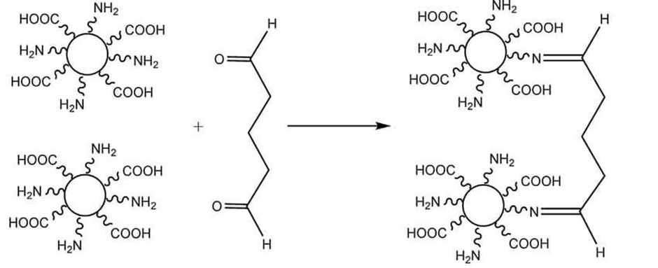 This process is appraised by Weber and colleagues, the least concentration of glutaraldehyde for preparing a stable nano-particles was around 40% and 24 hours of time of incubation reported by Weber et al.