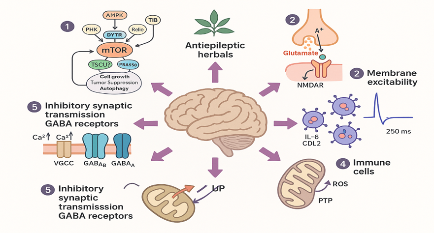 The exploration of traditional medicinal plants as antiepileptic agents has unveiled a diverse pharmacopeia of botanicals with promising anticonvulsant potential, as substantiated by a growing body of experimental evidence, particularly from animal models. This review underscores the therapeutic relevance of several key plants. The mechanisms identified include enhancement of GABAergic transmission, inhibition of glutamatergic excitotoxicity, modulation of ion channels (Na?, Ca²?), antioxidant activity, and anti-inflammatory effects critically involved in the pathophysiology of epilepsy.