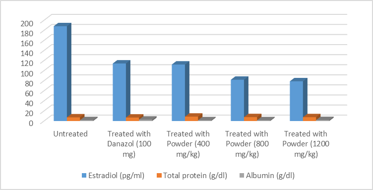 Figure 2. Estradiol, Total Protein and Albumin Levels Of the Treated Groups