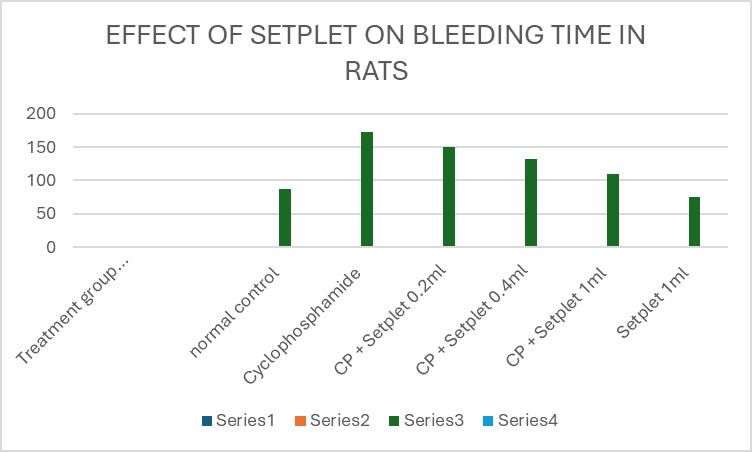 Table 3: Effect of Setplet on bleeding time in Cyclophosphamide induced thrombocytopenia