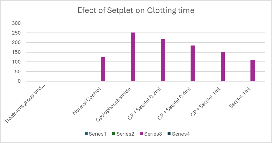 Table 4: Effect of Setplet on clotting time in Cyclophosphamide induced thrombocytopenia: