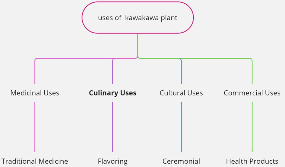 The kawakawa plant (*Piper excelsum*) has several uses, indicating its significance and wide range of uses. Kawakawa leaves are valued for their antibacterial, analgesic, and anti-inflammatory properties in traditional M?ori medicine. In addition to being chewed or brewed into tea to aid with digestive problems, they are commonly used as poultices to treat wounds, lower inflammation, and relieve pain. Additionally, the leaves are used in skin care products, where their extracts are applied to relieve a variety of skin irritations and disorders. In the culinary arts, kawakawa leaves are used to make tea because of their unusual flavour and potential health advantages, as well as to impart a distinctively spicy flavour to traditional M?ori foods. The plant holds cultural significance in M?ori rites and rituals, representing fortitude and protection. Additionally, kawakawa's essential oils are utilised in aromatherapy and natural cures, and the plant is becoming more and more prevalent in commercial health goods, such as herbal supplements and skincare formulas. This wide variety of uses highlights the plant's importance in commercial, cultural, gastronomic, and medical contexts. ((Ca Butts, n.d.))(Hodge, n.d.).
