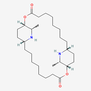 IUPAC Name: (1S,11R,13S,14S,24R,26S)-13,26-dimethyl-2,15-dioxa-12,25-diazatricyclo[22.2.2.211,14]triacontane-3,16-dione Mol. Formula: C28H50N2O4 Mol. Wt: 478.7 g/mol Physical Description: White, crystalline Melting Point: 121°C |