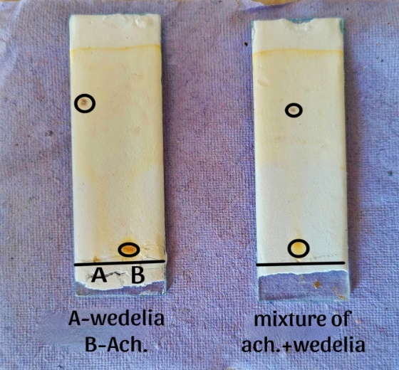 Figure 6.1.1: Noticeable interaction between Acetylcholine and Wedelia chinensis. Extract is observed on the TLC plate