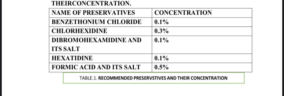 Table.1. Recommended preservatives and theirconcentration
