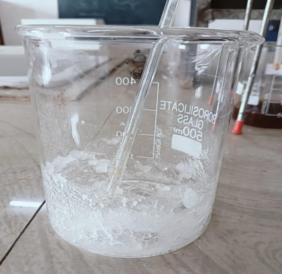 2. Gradually add 50-60°C distilled water to the mixing vessel while stirring with a glass rod or a mechanical stirrer.