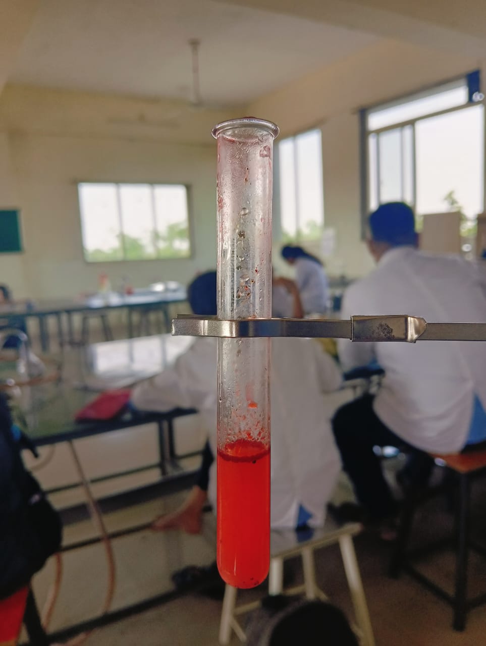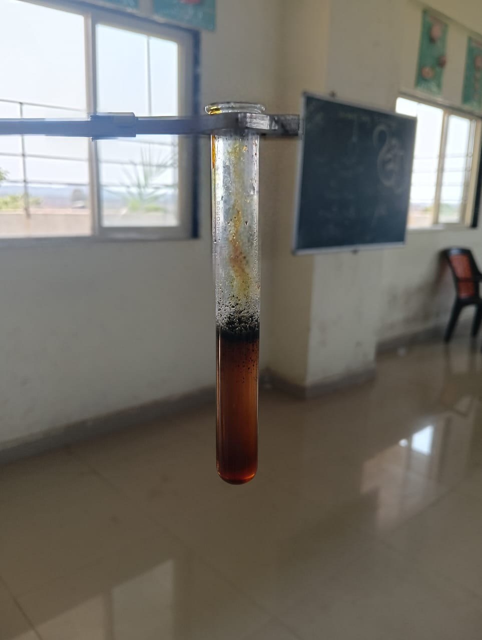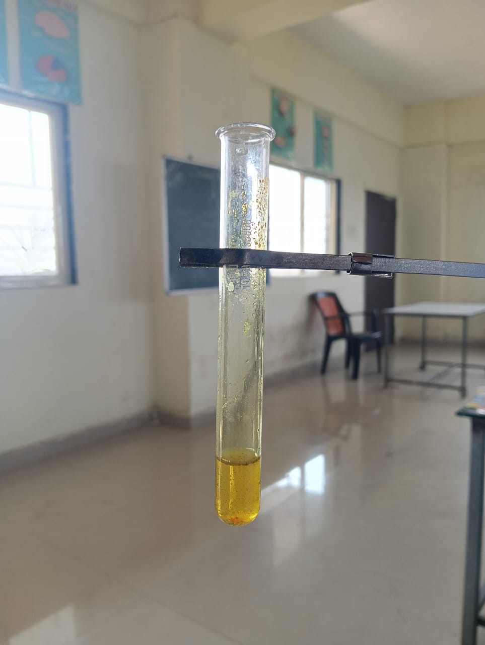 1.0ml of plant extract was taken and then add 1.0 ml of saturated solution of picric acid was added.Yellow colour appears.