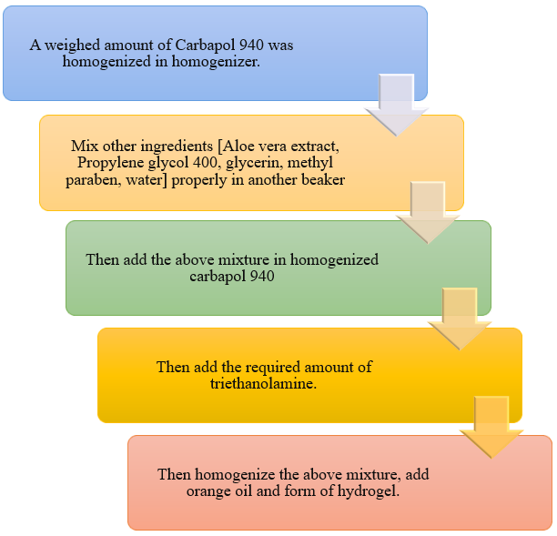 A hydrogel is a solid material that feels like jelly and may have hard, weak, or soft properties. Gels are defined as a highly diluted cross-linked system that, in its equilibrium state, exhibits no flow. Gels are primarily liquids by weight but, due to a three-dimensional cross-linked network within the liquid, they behave like solids. The tacky stick (tack) and structure of a gel are due to crosslinking within the liquid. Gels can be viewed as a dispersion of liquid molecules in solids, where liquid is the discrete continuous phase and solid is the continuous phase. A network composed of hydrophilic polymer chains is referred to as a hydrogel. It can sometimes occur as a colloidal gel with water as the dispersion medium. Hydrogels are synthetic or natural polymeric networks with very high absorbing capacity—they can absorb over 90% water. Due to their high water content, hydrogels also exhibit a certain level of elasticity which is very close to the real tissue. "Hydrogel" was first used as a term in a book in 1894. Plant-based formulations and drugs have attracted large attention from the public because of their creative applications. The objective of the present project is to develop and analyze an aloe vera extract hydrogel formula. Herbal cosmetics can be used by all skin types. Indian herbs are significant and popular worldwide. Beauty products are also herbal cosmetics. That pass desirable physiological activities like healing, smoothing appearance, and enhancing and conditioning properties due to herbal ingredients. Compared to synthetic cosmetic products Herbal products are low in toxicity, mild, and biodegradable. The common belief that chemical-based cosmetics are harmful to the skin and airways increased consumer consciousness of herbal products and stimulated demand for natural materials and natural extracts in cosmetic formulation.