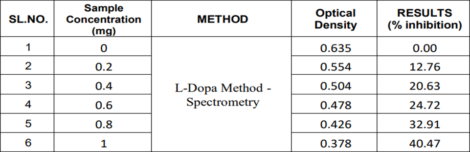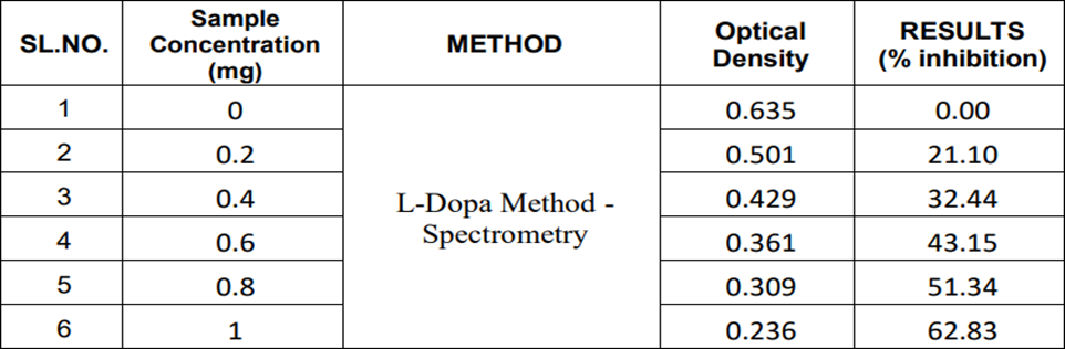 Table: 7 Effect of polyherbal serum on tyrosinase inhibition activity