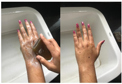 Skin irritancy: The soap was soaked in water and applied to the skin, allowed for 1 hour, observed the symptoms caused after applied.22.