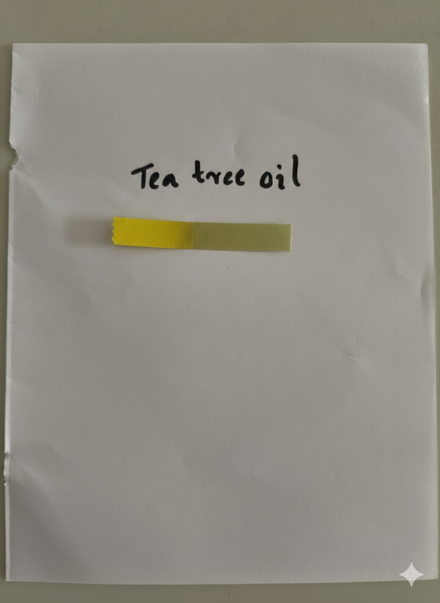 One drop of tea tree oil sample has been allowed to fall onto filter paper. The filter paper must be observed after 24 hours.