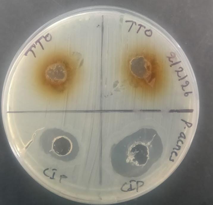Overall, the findings indicate that formulation F2 has potential as a topical antibacterial agent against P. acnes , particularly for adjunct or alternative therapy for infections caused by P. acnes. Though further optimization may be required to achieve efficacy comparable to conventional antibiotics.