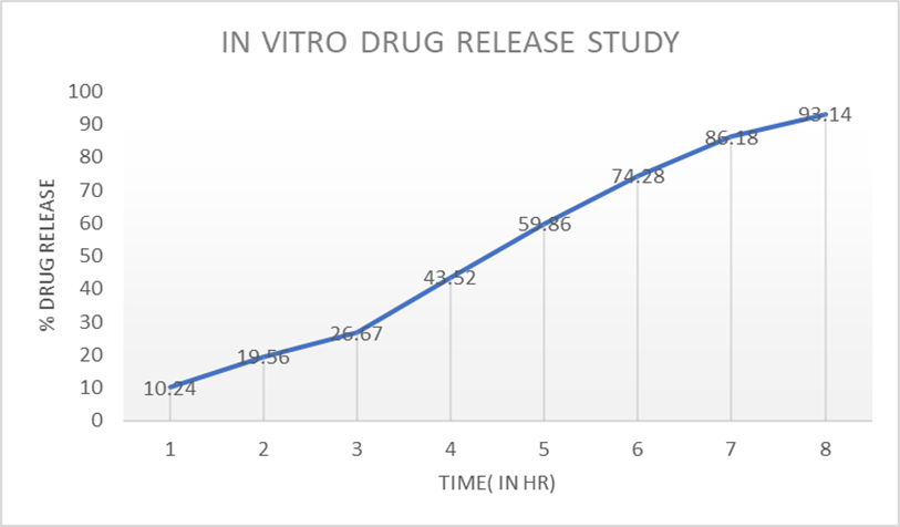 The in-vitro drug release using Franz diffusion cell shows a gradual increase over 8hr shows improved drug release. In vitro drug release studies demonstrated sustained release of drug over a prolonged period of time.