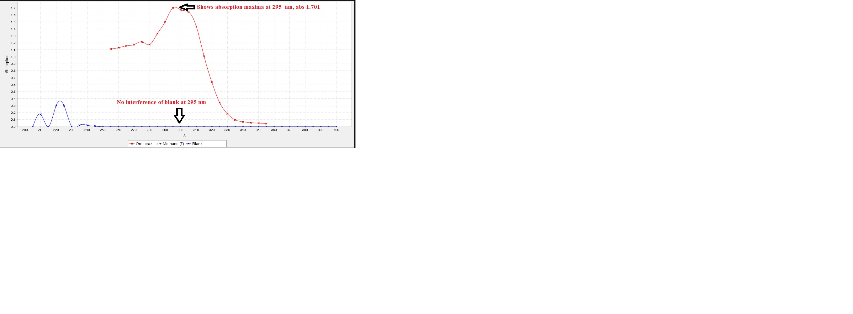 Figure No. 1: Spectrometric analysis of Omeprazole in Methanol