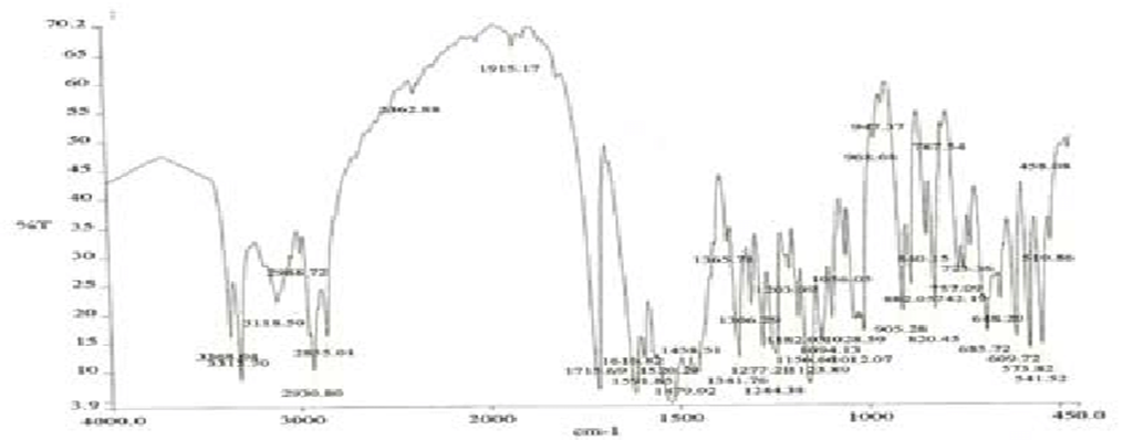 A similar study conducted by (Rahman. M et al, 2022, pp. 53-66)) Formulation and Physicochemical Characterization of Glibenclamide Solid Dispersion Using Various Carriers. The study reported that the IR spectra of the physical mixture of glibenclamide and the carrier (HPMC) showed peaks of both components, while the solid dispersion displayed only the characteristic peaks of the carrier, suggesting the conversion of glibenclamide into an amorphous state.