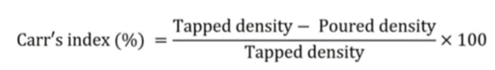 Carr’s index or compressibility index is determined by the following formula.