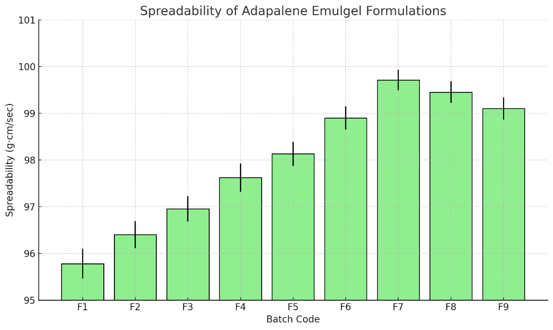To overcome these limitations, emulgel-based drug delivery systems have gained considerable attention. Emulgels combine the benefits of both emulsions and gels by incorporating emulsified drug droplets into a gel matrix. This hybrid system offers superior drug loading capacity for lipophilic drugs like adapalene, improved patient acceptability, controlled drug release, enhanced skin permeability, and better stability than conventional creams or ointments. The non-greasy texture, high spreadability and better cosmetic appeal of emulgels further contribute to enhanced patient compliance [5].