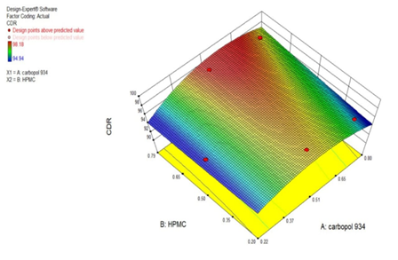 The three level designs are written as a 3k factorial design. It means that k factor is considered each at 3 levels. These are usually referred to as low, intermediate and high levels. These levels are numerically expressed as 0, 1 and 2 or -1, 0 and +1. A study in which there are two factors with 3 levels is called a 3ª factorial design. A 3² randomized full factorial design (FFD) was constructed where the amounts of Carbopol 934 and HPMC were selected as the independent factors. The three levels and two factors were selected on the basis of the preliminary studies carried out before implementing [13].