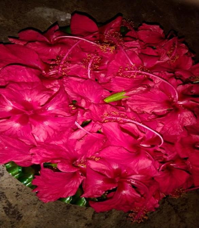 The most helpful element for hair is hibiscus or 'gudhal'. It is used to promote hair growth, regret, and hair loss. Hibiscus contains amino acids, Vitamin A, C, and alpha hydroxyl acids, as well as other nutrients, all of which are excellent to hair and scalp health. They maintain the scalp healthy and reduce the likelihood of hair dandruff . With antimicrobial properties, hibiscus curbs the growth of dandruff-causing yeast on your scalp, unclogs dandruff flakes from your hair follicles, and prevents dandruff recurrence . In India, Hibiscus flowers and leaves are used for the abortion, antifertility, contraceptive, Diuretic, Menorrhagia, Bronchitis, Emmengogue, Demulcent, Cough.