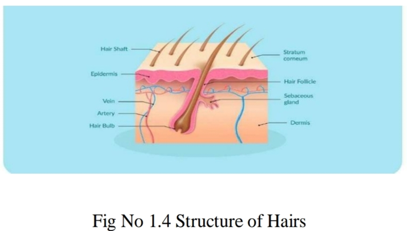 A hair is composed of columns of dead, keratinized cells welded together. The shaft is a Superficial portion of the hair, which projects from the surface of the skin. The shaft of straight Hair is rounded in a cross-section, that of wavy hair is oval and that of wooly hair is elliptical or Kidney-shaped. The root is the portion of the hair deep into the surface that penetrates the dermis And sometimes into the subcutaneous layer. The shaft and root both