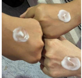 The portion of cream was applied on hands and left for 15 ,30,40 minutes and after that result was noted.