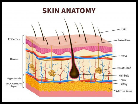 Skin: Skin is the largest organ in the body and covers the body’s entire external surface. It is made up of three layers, the epidermis, dermis, and the hypodermis, all three of which vary significantly in their anatomy and function. The skin also regulates body temperature stores water and fats. [14,15]