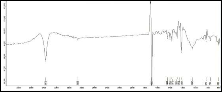 Infrared spectrophotometry is an effective analytical method for evaluating the chemical interactions between drugs and excipients in formulations. The sample was powdered and intimately mixed with 10mg of potassium bromide (KBr). The powdered mixture was gathered in a diffuse reflectance sampler and examined using a FTIR spectrophotometer in the 4000- 400/cm wavelength range. The Infrared spectra of the drug was compared to those of the physical combination to find potential drug-excipient interactions [9].