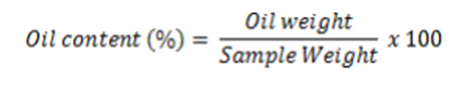 After the recovered lemongrass oil was moved to a measuring cylinder, its volume was noted and represented as oil content (%) as follows: